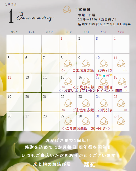 1月営業日カレンダー